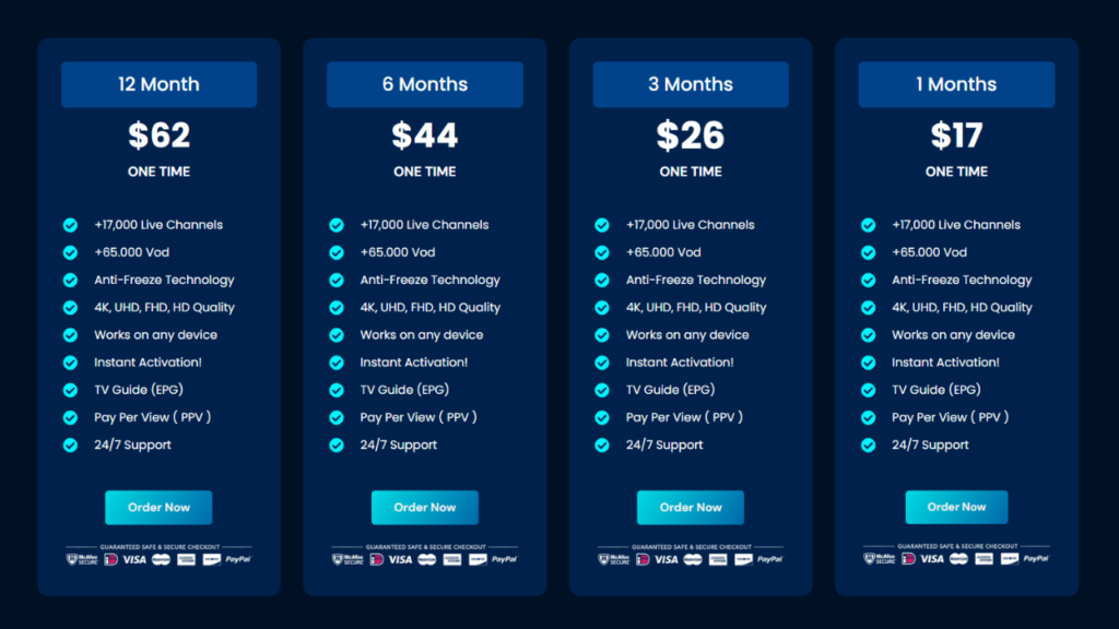 If you’re looking for a reliable and trusted IPTV provider, check out our IPTV subscription plans, designed to work seamlessly with IPTV Smarters Pro. With top-tier service and unmatched quality, we’re here to enhance your streaming experience.